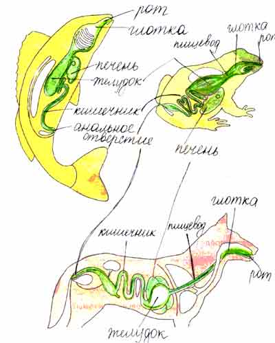 Rassmotrite Risunki Zakraste Zelenym Karandashom I Podpishite Otdely Pishevaritelnoj Sistemy Ryby Lyagushki I Sobaki Univer Soloby