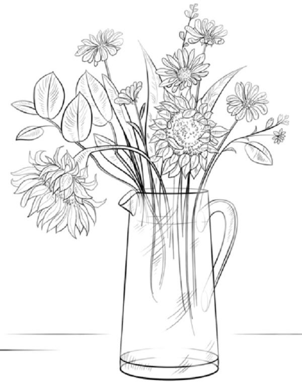 рисунки карандашом ваза с цветами