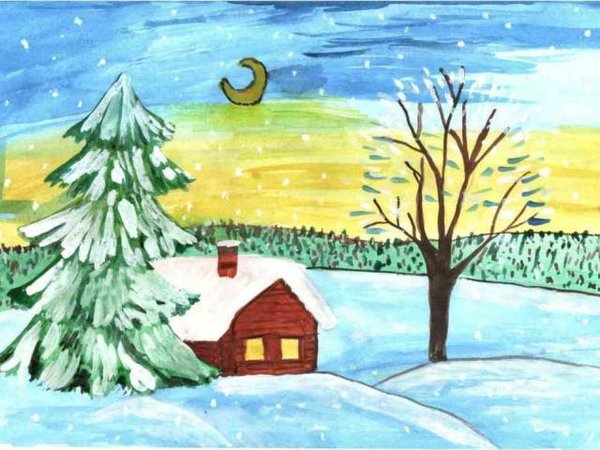 рисунки карандашом зима для начинающих