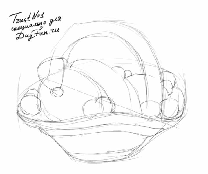 рисунки карандашом карзина с фруктами