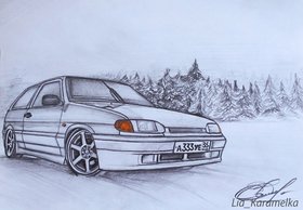 рисунки карандашом машины 2114