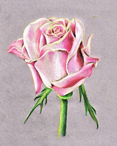 рисунки розы акварельными карандашами