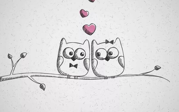 рисунки совы с сердечками карандашом